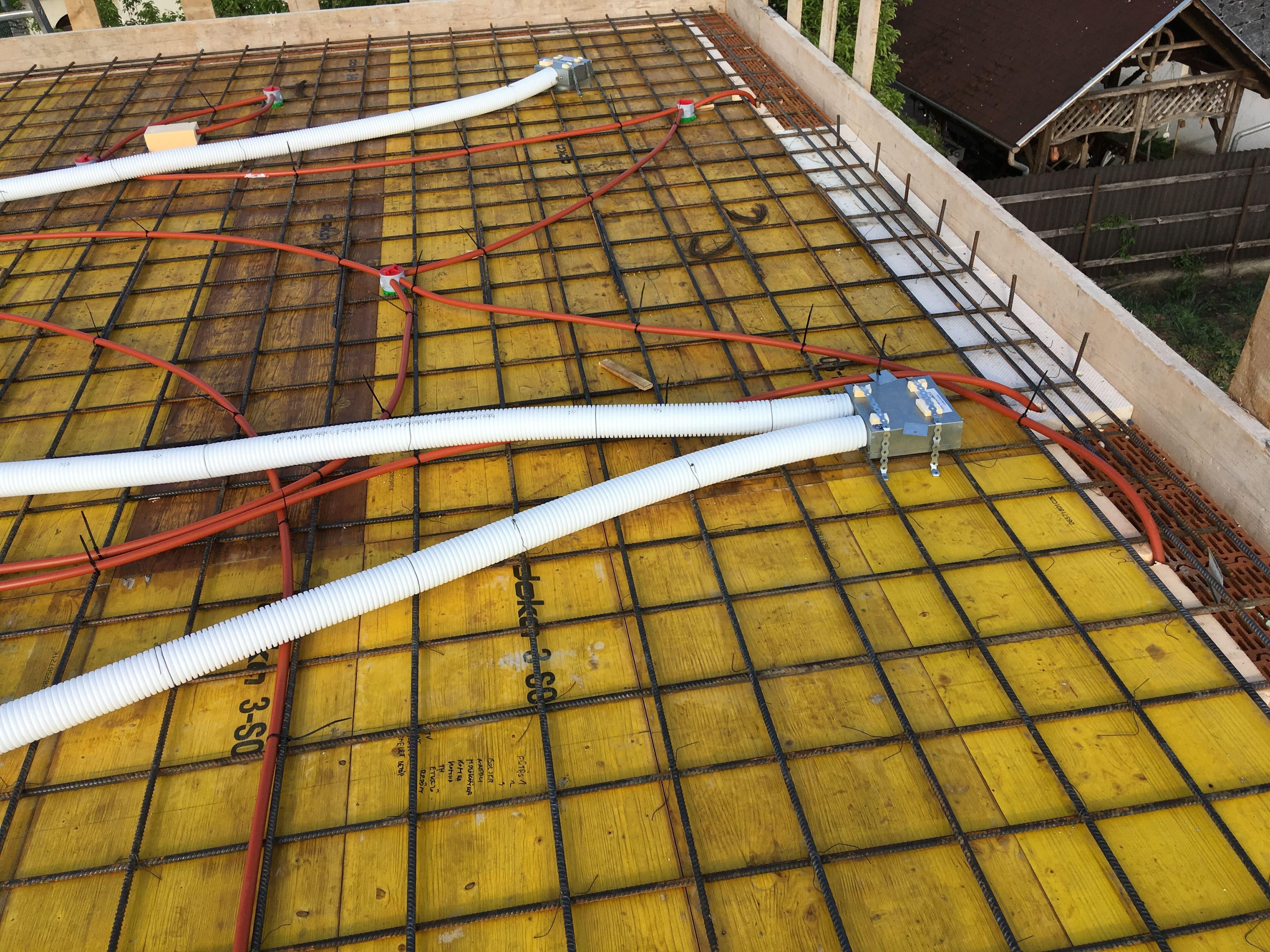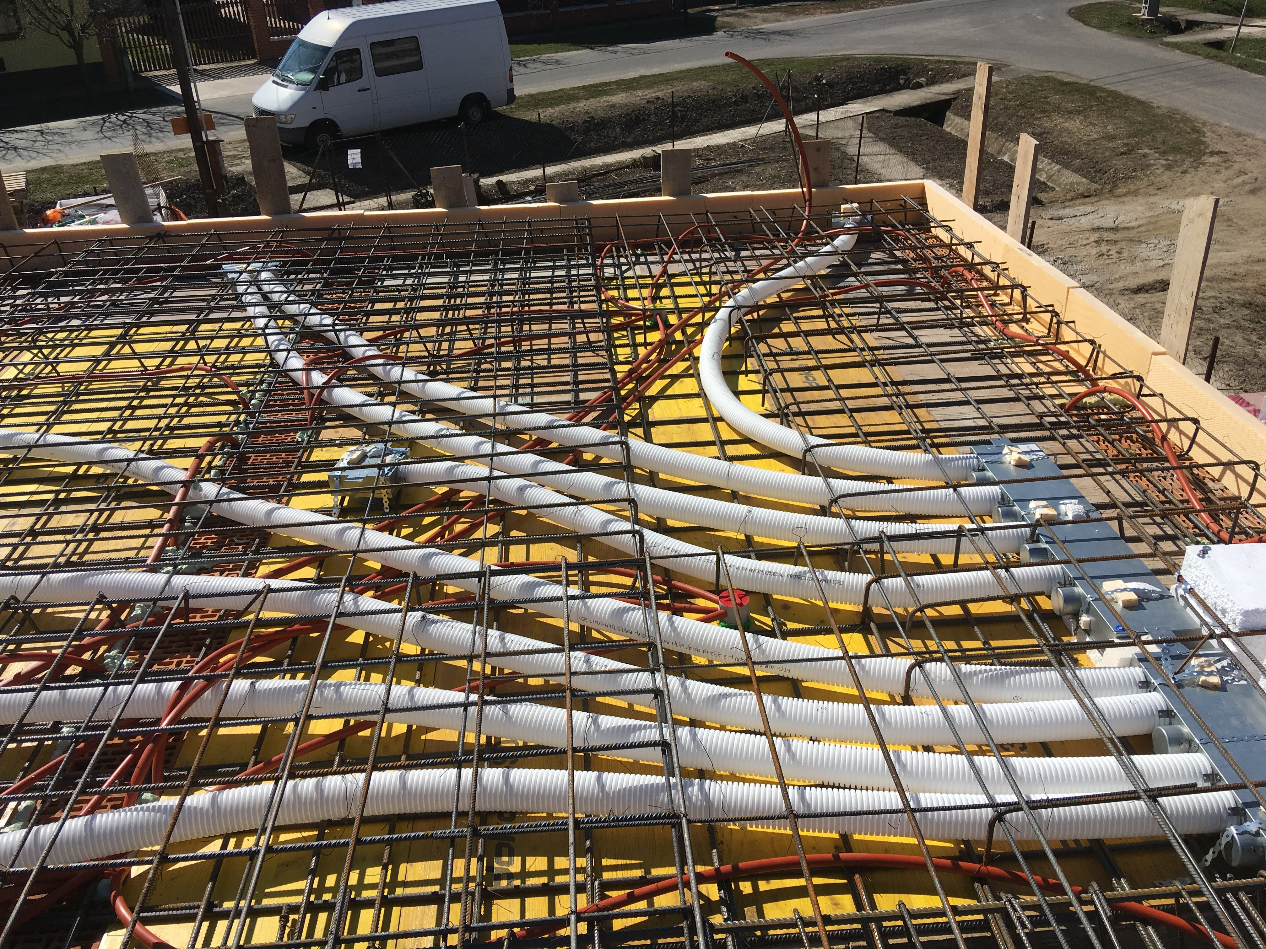 A szellőztető rendszert a vásárló saját kezűleg rakta össze. A családi ház két szint közötti és emeleti födéme is vasbeton monolit födém, az egyes szintek szellőztetése a felette lévő monolit födémből (plafon irányából) történik.