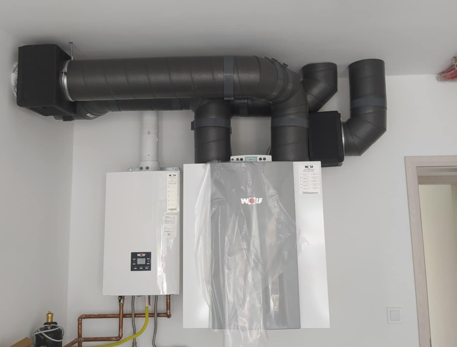 ("ALAP" rendszer példa, Vortice AVEL 350 szellőztető gép) ("PRÉMIUM" rendszer példa, WOLF CWL 300 szellőztető gép)
