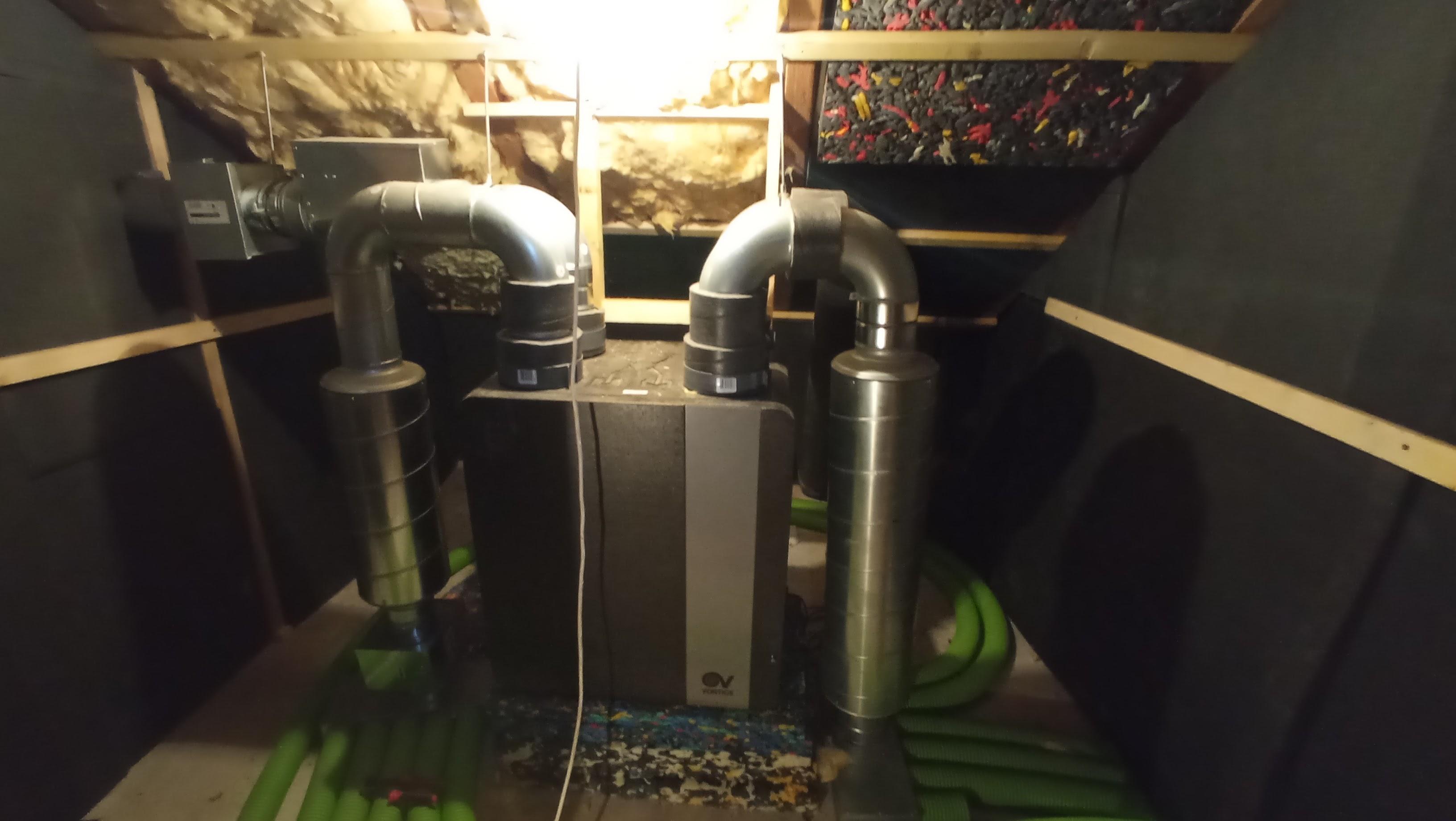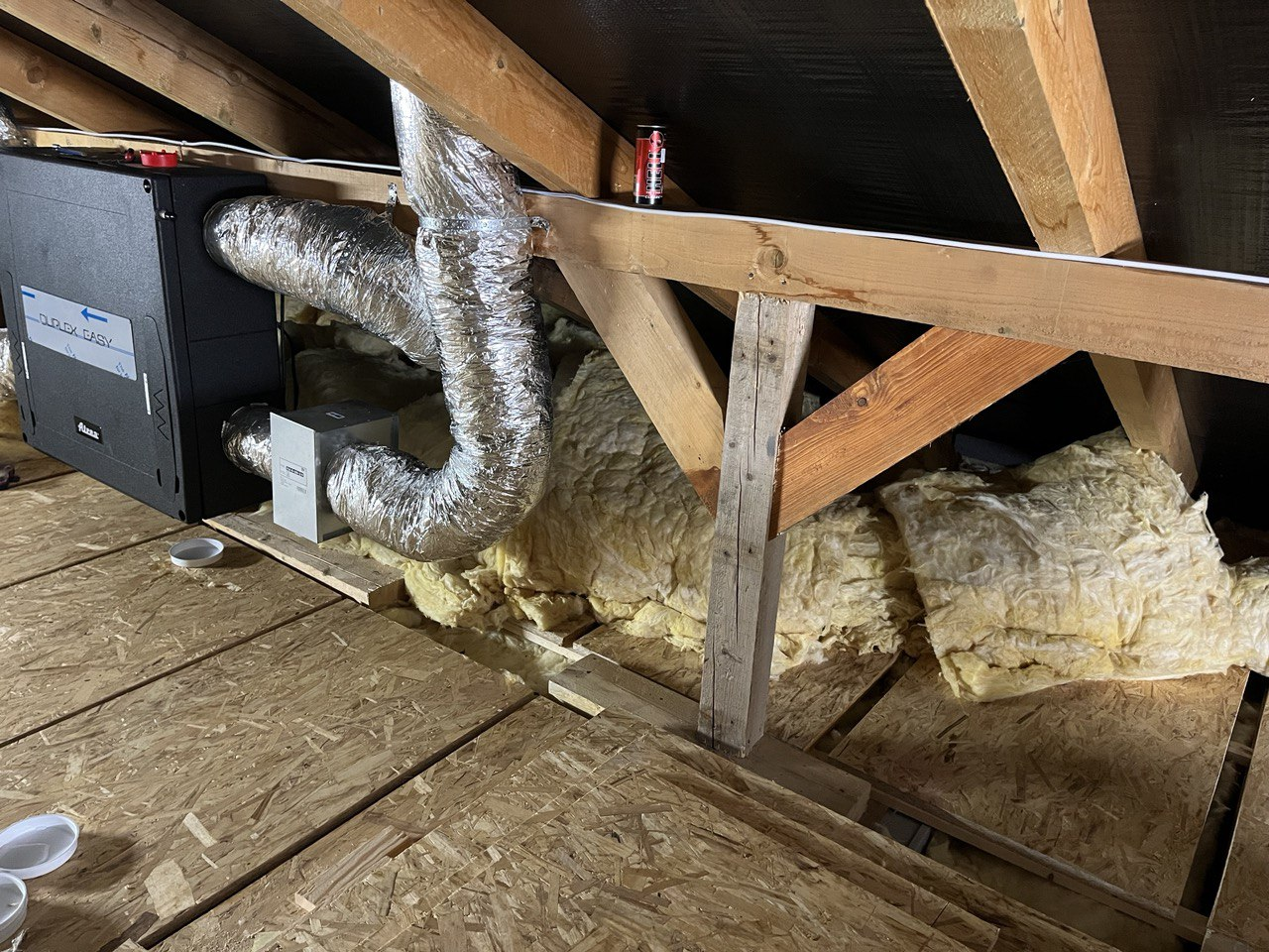Körültekintően kialakított szellőztető rendszer padláson szerelve - példa