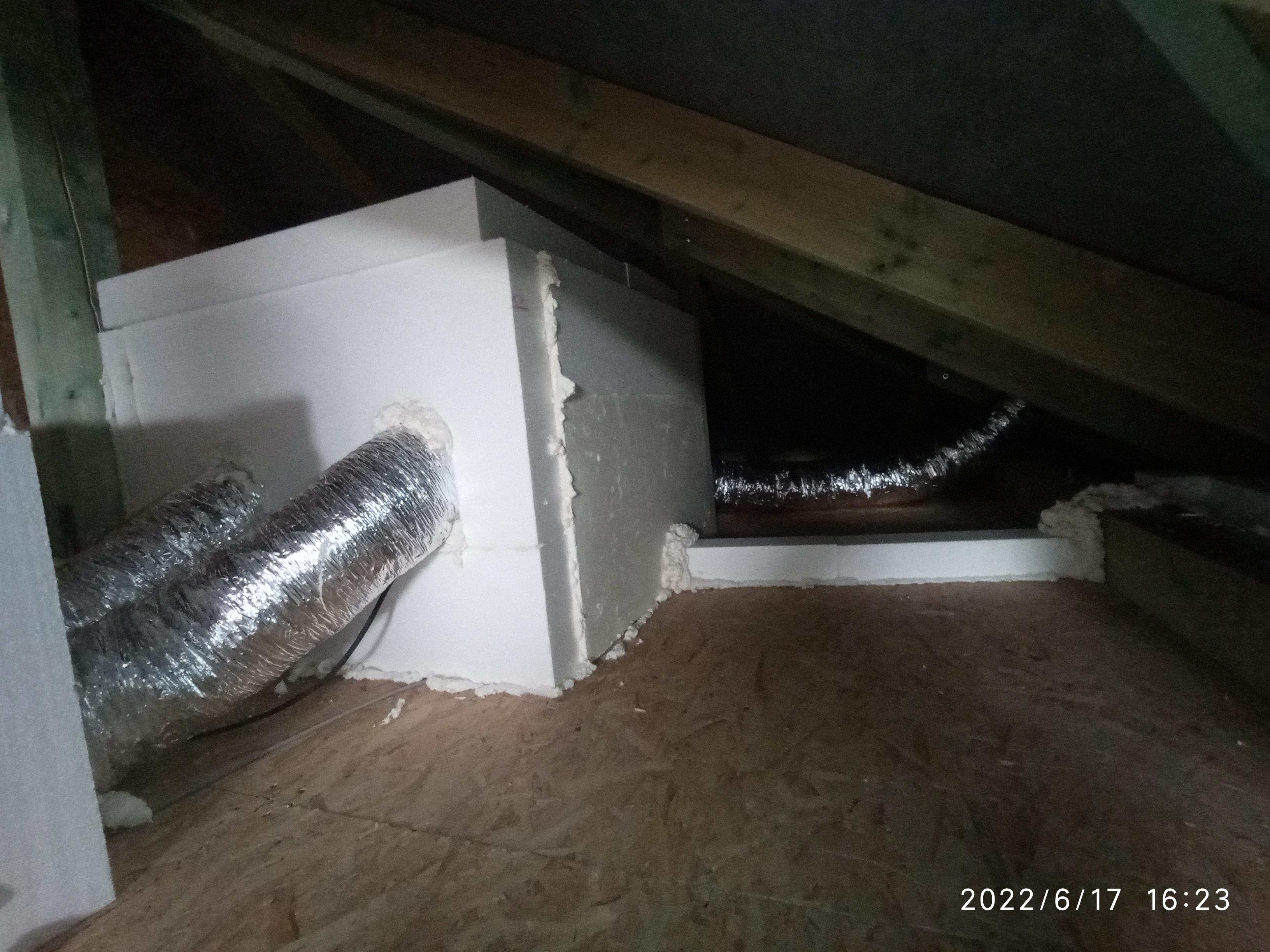 Rosszul kialakított légtechnikai rendszer padláson szerelve - példa